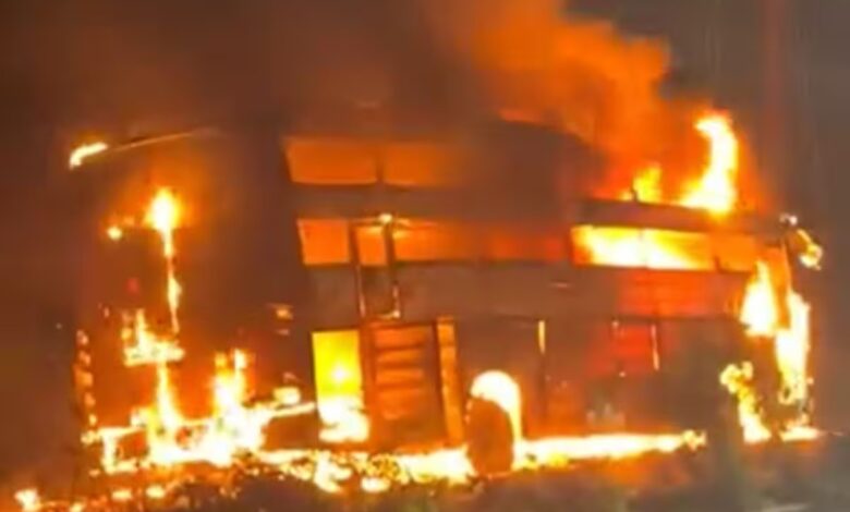 ग्वालियर : ग्वालियर में सोमवार देर रात एक बड़ा हादसा टल गया। गुड़गांव से पन्ना (मध्य प्रदेश) जा रही एक यात्री बस में अचानक आग लग गई, और देखते ही देखते पूरी बस जलकर खाक हो गई। बस में सवार 45 यात्रियों की जान चालक की सूझबूझ और त्वरित कार्रवाई से बचा ली गई।