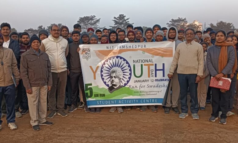 जमशेदपुर: स्वामी विवेकानंद की 164वीं जयंती और राष्ट्रीय युवा दिवस के गौरवशाली अवसर पर राष्ट्रीय प्रौद्योगिकी संस्थान , जमशेदपुर द्वारा “रन फॉर स्वदेशी” मैराथन का भव्य आयोजन किया गया। बिष्टुपुर स्थित डाउनस ग्राउंड में आयोजित इस कार्यक्रम के माध्यम से छात्रों ने न केवल अपनी शारीरिक क्षमता का परिचय दिया, बल्कि राष्ट्र निर्माण और आत्मनिर्भर भारत के प्रति अपनी प्रतिबद्धता भी दोहराई।
