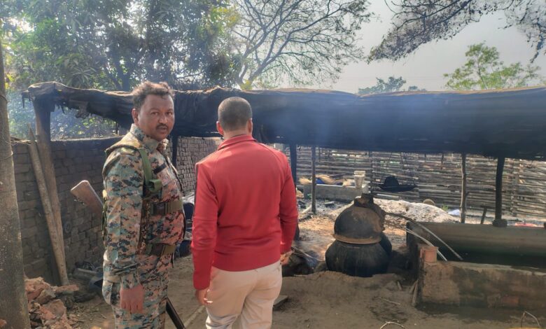 Jharkhand: अवैध शराब के ठिकानों पर जिला प्रशासन ने करवाई करते हुए 4 भट्टियां को किया ध्वस्त, 1100 किलो जावा महुआ नष्ट