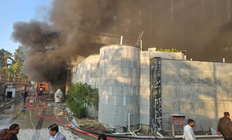 लखनऊ (विभूतिखंड): राजधानी के पॉश इलाके विभूतिखंड में शुक्रवार शाम एक निर्माणाधीन पांच सितारा ‘न्यू ताज’ होटल में भीषण आग लग गई। आग होटल के बेसमेंट-वन में मशीन से निकली एक छोटी सी चिनगारी से शुरू हुई, जिसने देखते ही देखते विकराल रूप धारण कर लिया। इस दौरान होटल के भीतर रखे केमिकल और पेंट के ड्रमों में जोरदार धमाके होने लगे, जिससे पूरे इलाके में दहशत फैल गई। गनीमत रही कि इमारत में मौजूद सभी 500 से अधिक कर्मचारी और मजदूर सुरक्षित बाहर निकल आए।