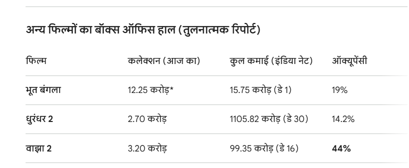 Entertainment: ‘भूत बंगला’ ने ओपनिंग डे पर ‘मुंज्या’ को पछाड़ा, ‘धुरंधर 2’ और ‘वाझा 2’ की रफ्तार भी जारी