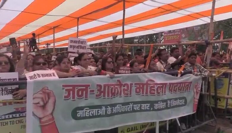 Bihar:महिला आरक्षण बिल पर एनडीए का विशाल जन आक्रोश मार्च,जंजीरें बांधकर पहुंचीं कार्यकर्ता