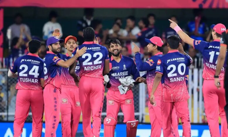 राजस्थान रॉयल्स: यशस्वी जायसवाल, वैभव सूर्यवंशी, ध्रुव जुरेल (विकेटकीपर), रियान पराग (कप्तान), डोनावन फरेरा, दासुन शनाका, रवींद्र जडेजा, जोफ्रा आर्चर, ब्रिजेश शर्मा, नंद्रे बर्गर, यश पुंजा।